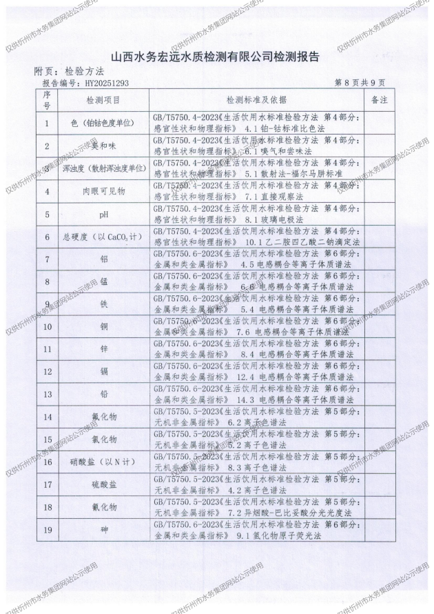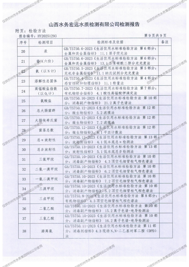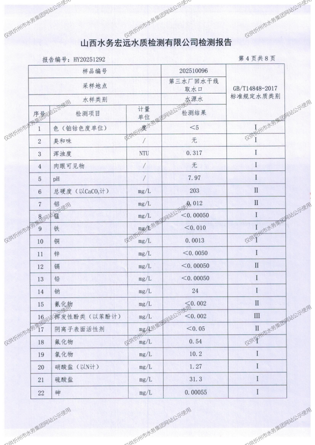 忻州城區(qū)公共供水水源水、出廠水、管網(wǎng)水、管網(wǎng)末梢水2025年10月份水質(zhì)信息公示